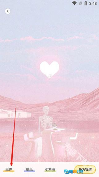 3、设定好壁纸后,点击【组件】选项。