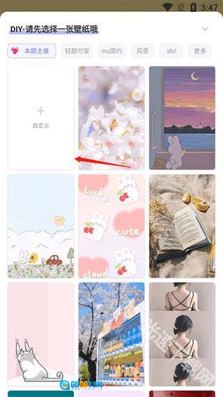 1、开启好布丁锁屏后点击进入,既可以直接挑选心仪的壁纸进行设置,也能在首页点击右上角的按钮,自行制作专属主题。