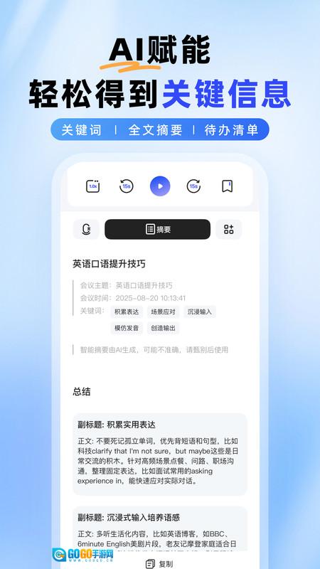 1、要点挖掘功能十分强大,可从关联性较强的会议内容里迅速筛选出关键信息,帮助用户节省时间。