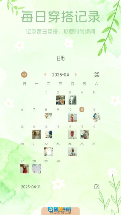 3、每日穿搭的记录形式很新颖,采用日历样式来展示每日穿搭,既能珍藏时尚瞬间,也便于回顾穿搭风格的变化。