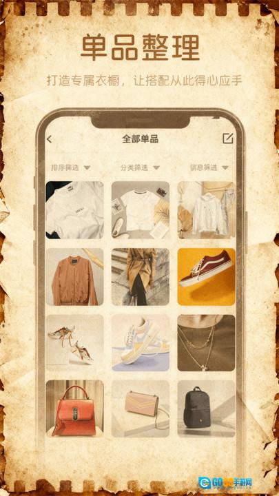 4、单品整理功能十分强大,支持排序、分类与信息筛选,助力打造专属衣橱,让穿搭搭配从此变得轻松自如。