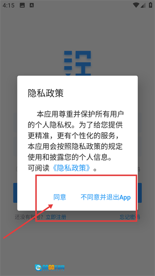 进入应用后会弹出【隐私政策】弹窗,阅读完毕并点击【同意】按钮,就能进入后续与【移动ERP管理系统】相关的操作界面。