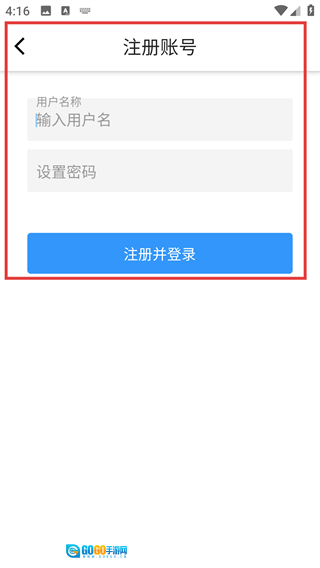 4、进入【注册账号】页面,依次填写【用户名】和【设置密码】,填写完成后点击【注册并登录】按钮,即可完成账号注册流程。