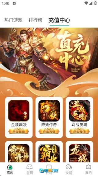 1、设有热门游戏、排行榜、充值中心等板块,便于玩家迅速定位所需内容。