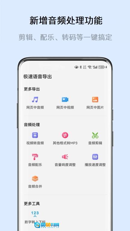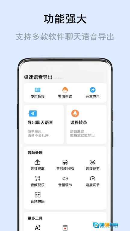 1、极速语音导出支持多账号切换,还具备语音分享、筛选、合并及转码功能
