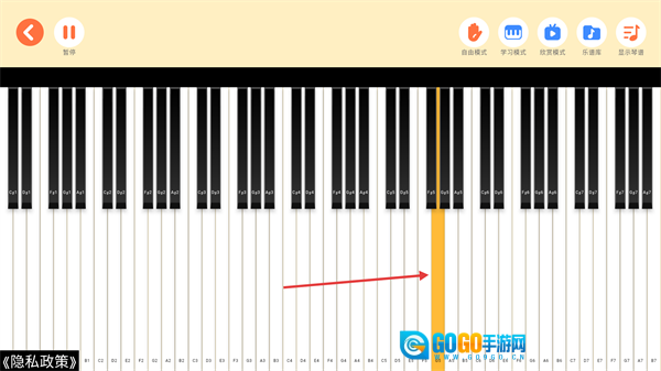 进入弹奏界面后,钢琴键会出现黄色提示,按照提示弹奏就行,也能根据自身需求切换模式。