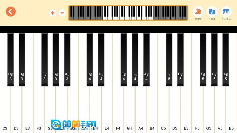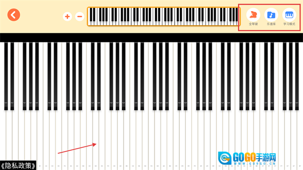 1、在钢琴软件的主界面上,你可以点击右上角的【乐谱库】按钮,从而进入到乐谱选择页面。
