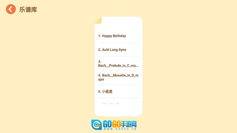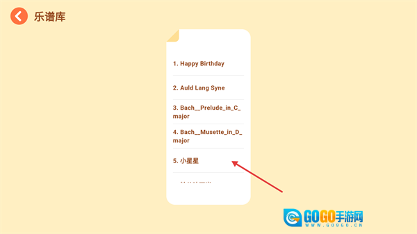 2、在【乐谱库】里,挑选你想弹奏的曲目,比如【小星星】,然后进入该曲目的弹奏界面。