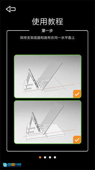 导入图片后,系统会依据手机屏幕比例与导入图片的比例,自动调整出合适的展示方式;用户只需将手机放在支架上,通过观察反射画面来确认设备的横竖放置方向。