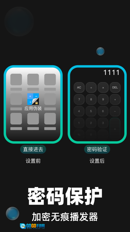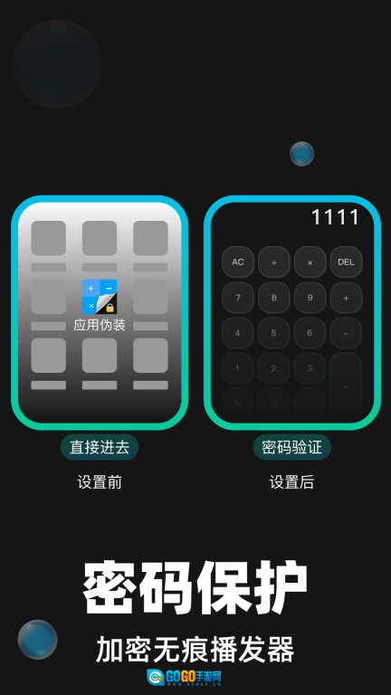 3.设置“伪装密码”功能,当输入伪装密码时,应用会跳转至伪装界面;只有输入正确的隐私密码,方可进入隐私空间。