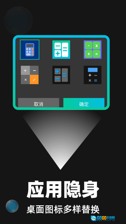 2.挑选“伪装图标”,例如把App图标换成“计算器”“天气”这类常用应用