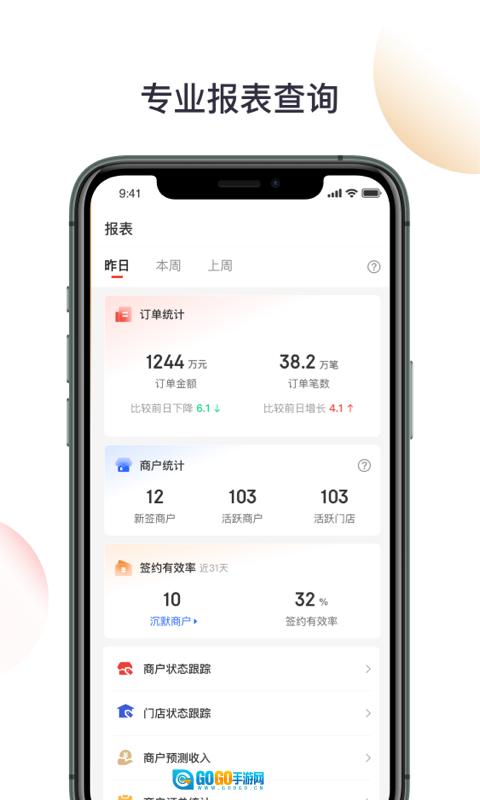 软件拥有完善的报单管理能力,可实时追踪并管理业务员的签约进度,保障每笔交易记录精准无误。通过机具绑定功能,业务员能迅速完成支付设备与商户账户的关联,有效简化设备操作流程。运营数据分析模块生成全面的业务数据报表,助力业务员及时掌握市场趋势与商户运营状态。商户应用功能则为商户提供多元化服务,进一步提升了客户的使用体验。