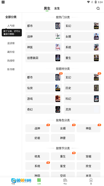 3、选择你喜欢的男生或女生小说。