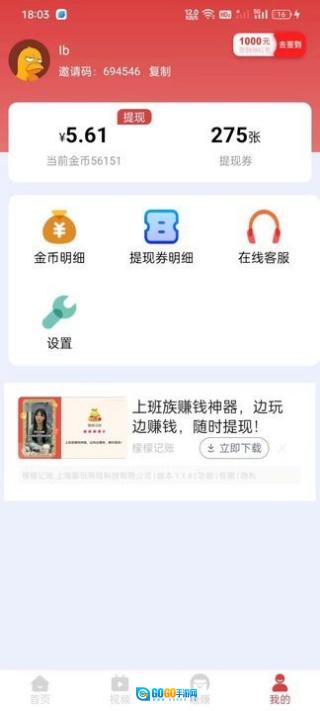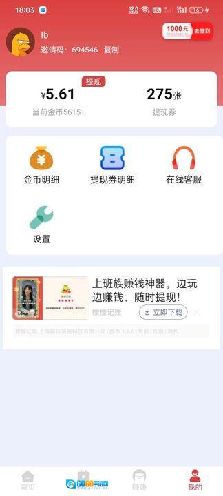 4、在我的,这里可以随时进行提现。