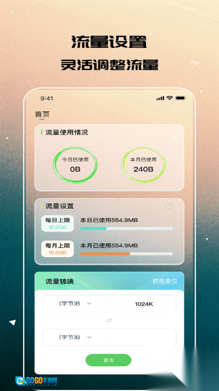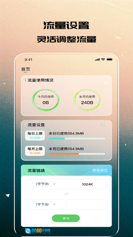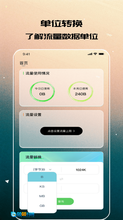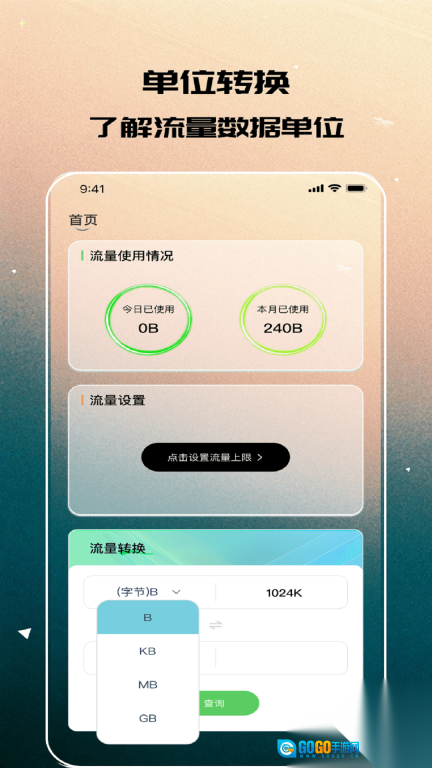 3、智能流量单位换算工具,支持GB、MB、KB之间的自由转换。