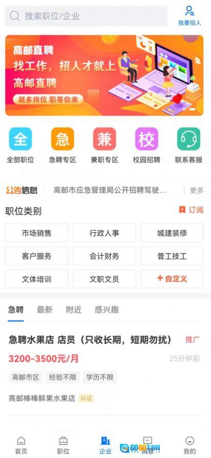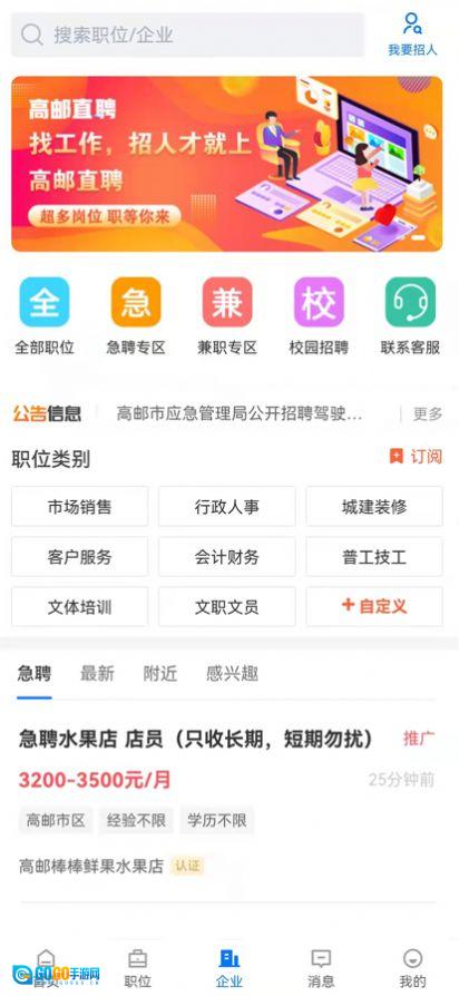 高邮直聘这款软件可以助力更多求职者找到合适的工作,平台设有优质岗位专区和兼职专区,对在校大学生也十分友好,提供校园招聘服务。若是用工单位,也能通过注册审核成为会员,进而发布招聘信息,招到更匹配的人才。