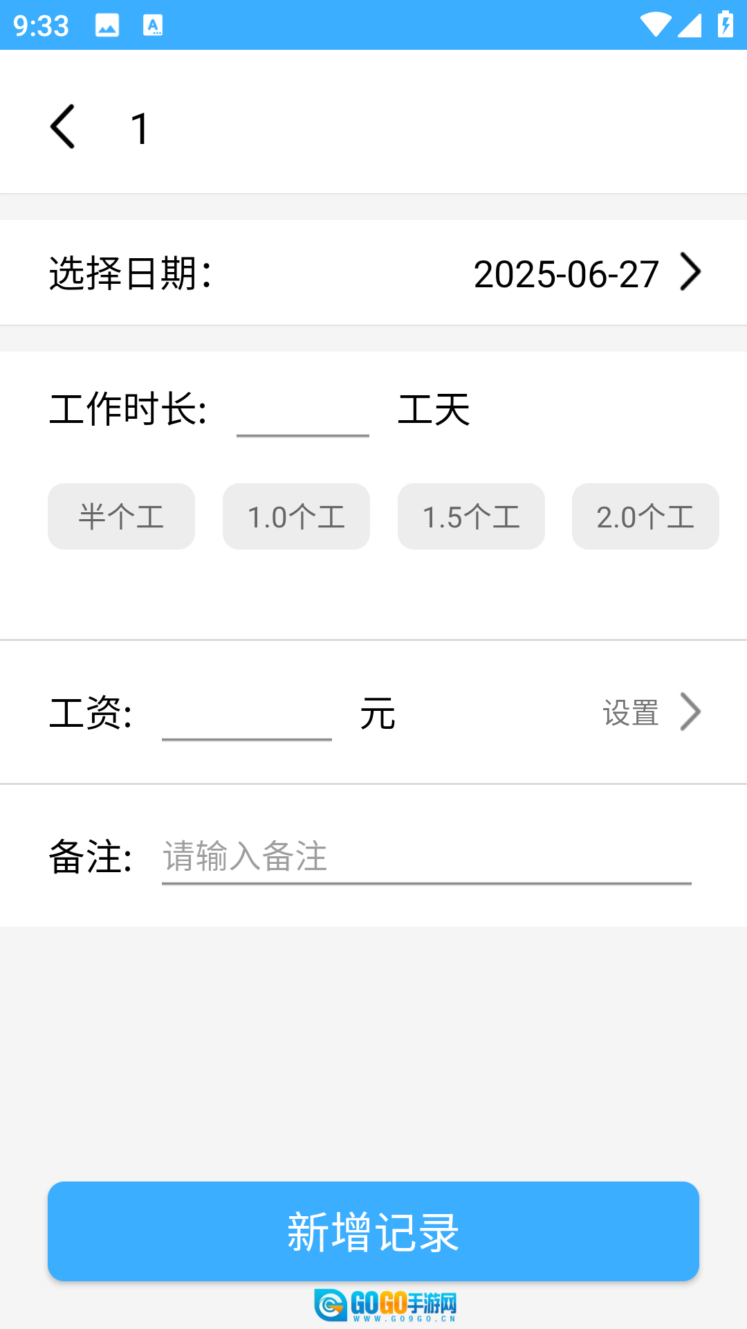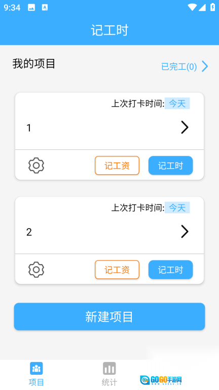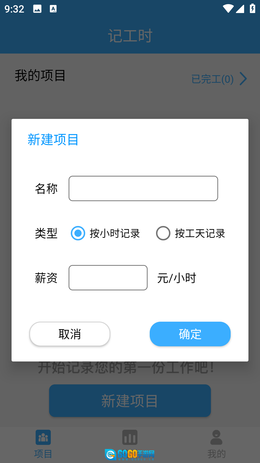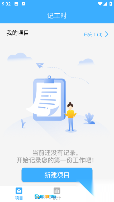 2、点击【新建项目】按钮,填写相关信息,记录工时后,点击【新增记录】就可以了。