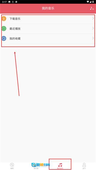 2、点击底部的【我的音乐】选项,进入个人音乐管理页面后,就能查看并管理【音乐】【最近播放】【我的收藏】这些内容了。