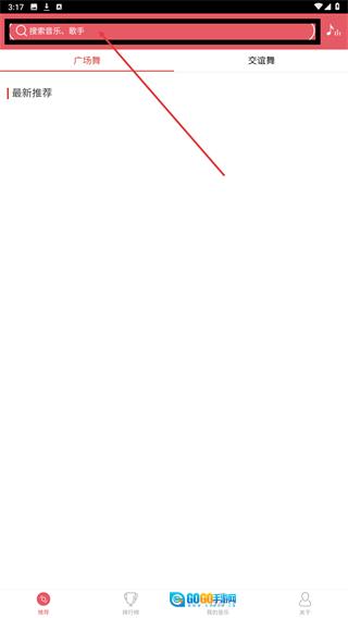 1、在推荐页面顶部的搜索框中,输入音乐名称或歌手名字,就能搜索到对应的资源;此外,还可以切换【广场舞】【交谊舞】这两个分类来浏览相关内容。