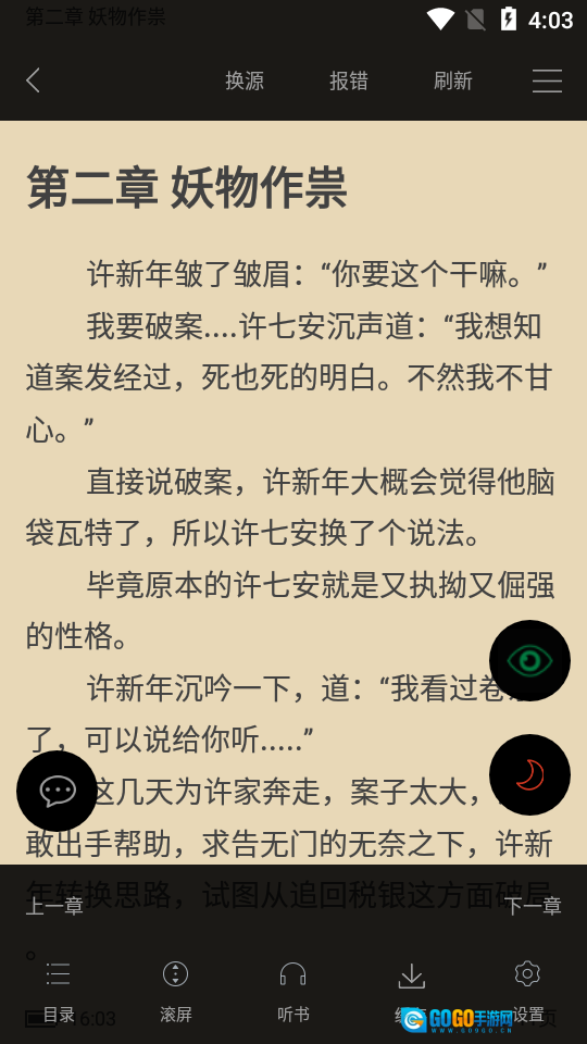 2、点击即可开始在线阅读小说,也能直接进行缓存操作;