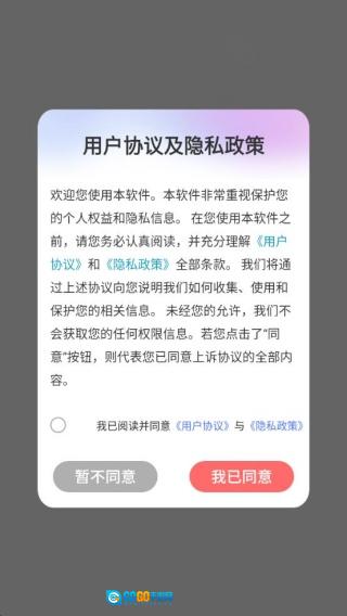 1、软件安装完成后启动进入,会弹出用户协议与隐私政策的提示,点击“我已同意”即可。