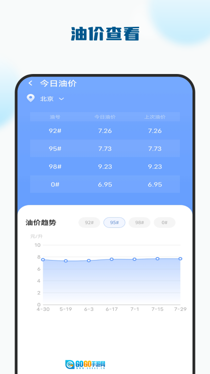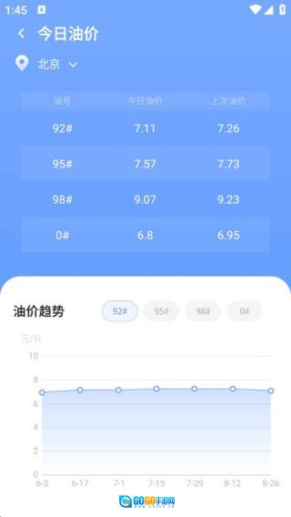 4、今日油价的走势清晰明了,既能查看详细数据,也能通过图表进行查看。