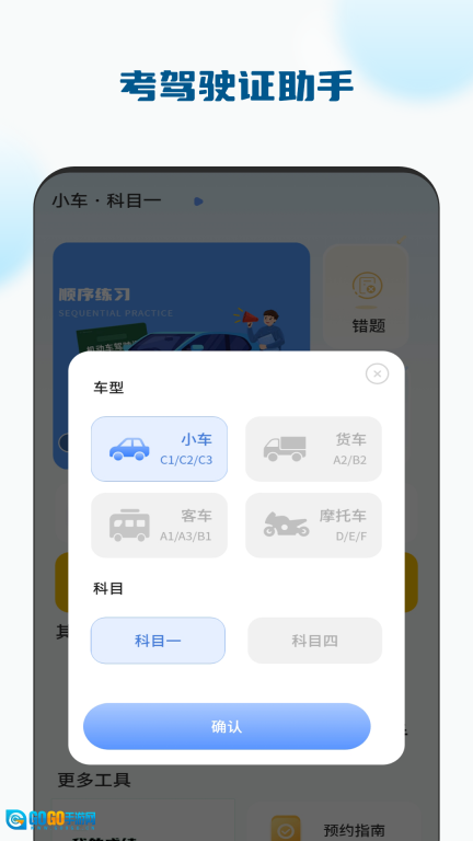 进入驾考界面后,你能找到丰富的题库资源用于练习学习,同时还可以对做错的题目进行整理归纳。