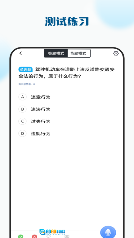 3、进入顺序练习界面后,可选择答题模式或背题模式,助力更高效地进行练习与学习。