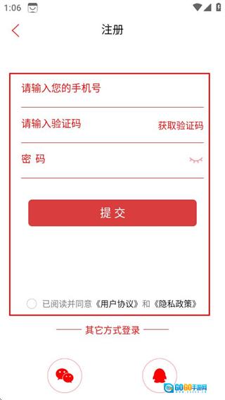 4、在注册页面输入相关信息,勾选对应的协议后,点击提交按钮就能完成注册流程。