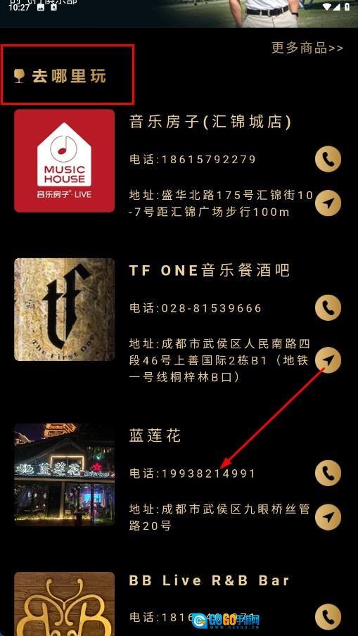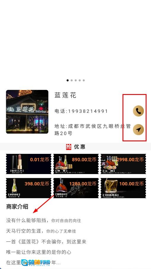 2、在场所列表中点击目标场所,即可查看该场所的联系电话、详细地址以及商家介绍等相关信息。