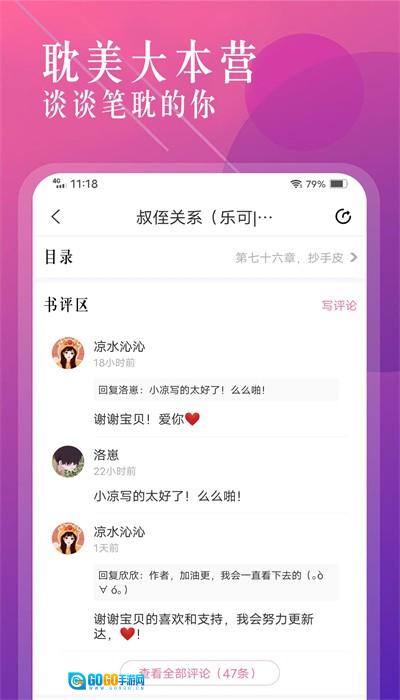 平台把小说划分成多个明确的类别,便于用户快速定位到自己感兴趣的作品。借助平台的搜索工具,能轻松找到特定题材的小说。百合小说设有评论、点赞和打赏等互动功能,读者可以和作家实时沟通,分享阅读体验。这种互动方式不仅提升了用户的参与感,还推动了平台的活跃度,营造出良好的阅读氛围。