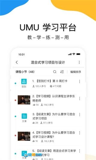 umu互动是一款在线互动的智能学习平台软件,在个性化练习与辅导过程中能提供精细点评,实时多维度AI反馈系统助力学员提升练习兴趣;图文音视频微课的制作操作十分简便,方便用户随时分享知识内容。此外,umu互动拥有数十种教学与互动模块,支持讲师在直播、微课、考试、作业等全教学环节与学员开展全面互动,可全场景适配混合式教学模式。
