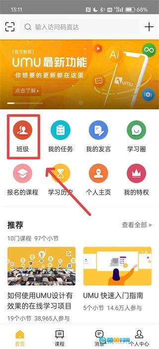 进入首页,选择“班级”。