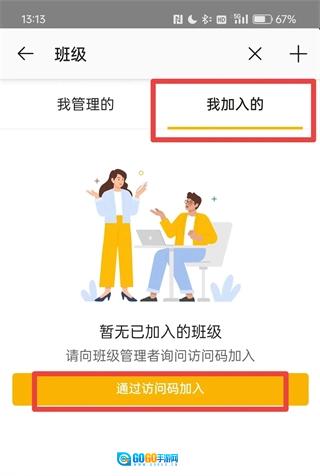首先选择“我加入的”选项,接着点击“通过访问码加入”按钮,最后输入对应的访问码就可以了。