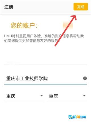 重新输入验证码后点击提交,接着填写你的真实姓名与学校名称,之后再点击右上角的“完成”按钮。