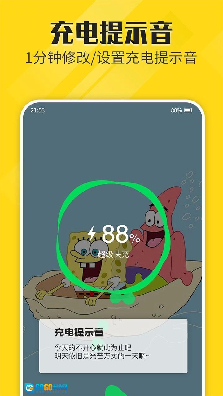2、设置充电提示音或动画仅需1分钟,还提供海量搞笑语音包。