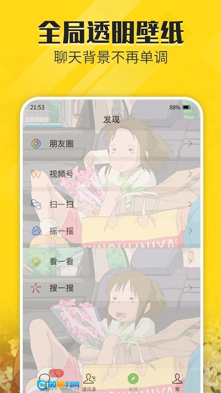 2、各种透明壁纸选择,即刻给你一个超炫酷的透明聊天背景主题。