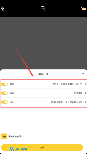 4、点击水印,可以修改时间和地点。