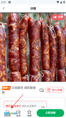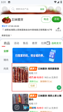 3、在店铺页面挑选心仪的商品,比如王妹腊货湘西腊香肠,然后进入该商品的详情页面。