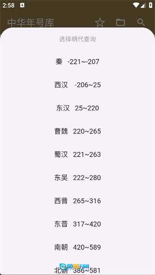 3. 点击页面右上角的文件夹图标,就能选择你想要查看的朝代。