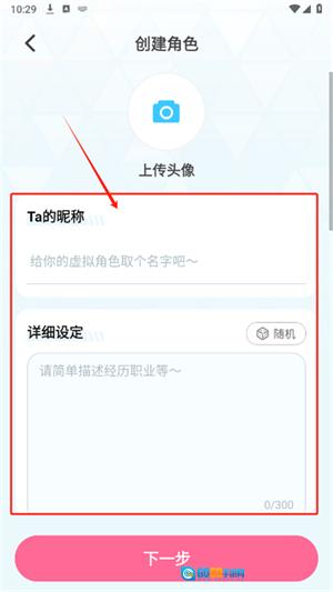 3、填写昵称、详细设定,选好性格标签等,点击下一步就能完成创建