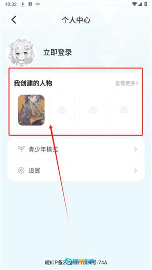 4、在个人中心页面可以查看到自己创建的人物