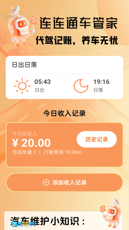 3、对代驾的收入、行驶里程及完成单量进行记录,支持手动添加收入记录,还能生成收入明细,方便用户进行对账。