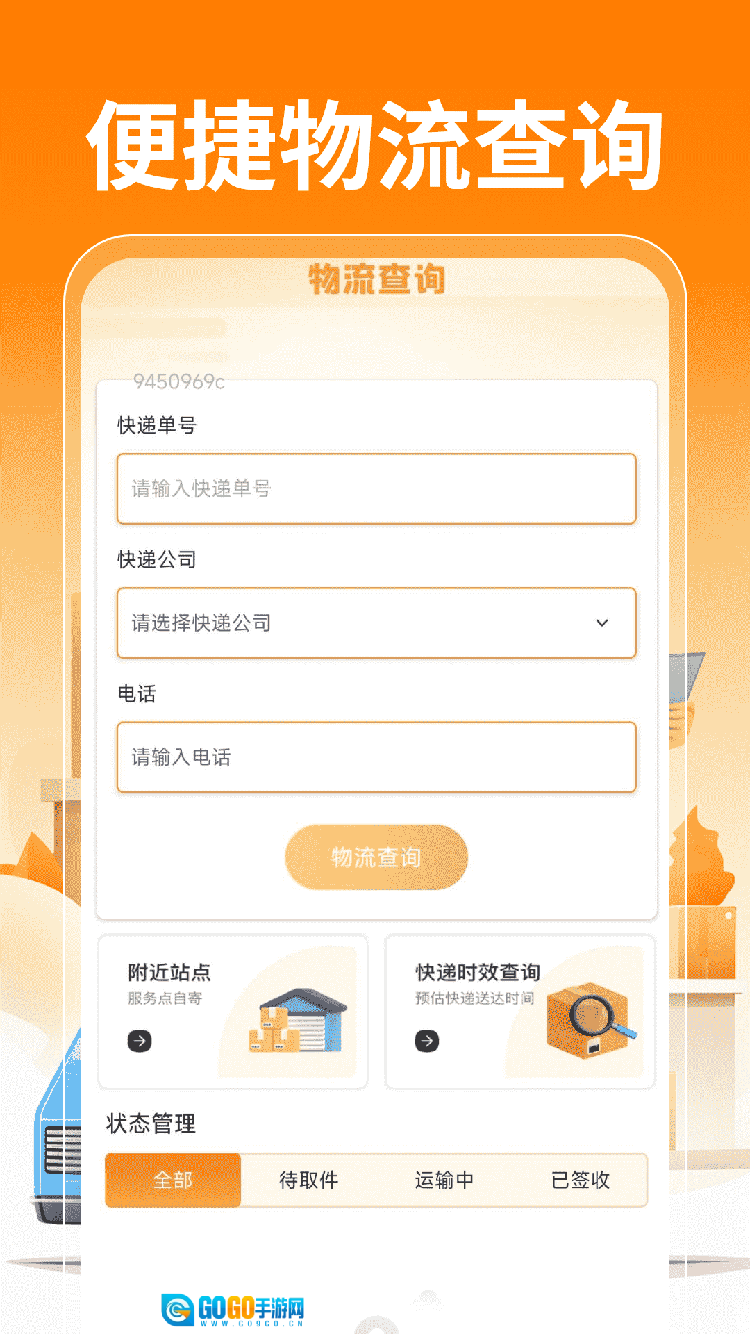 3、只需输入快递单号、选择对应的快递公司并填写联系电话,就能查询到物流的实时状态,另外还可以查看附近的快递站点信息以及快递的预计时效。