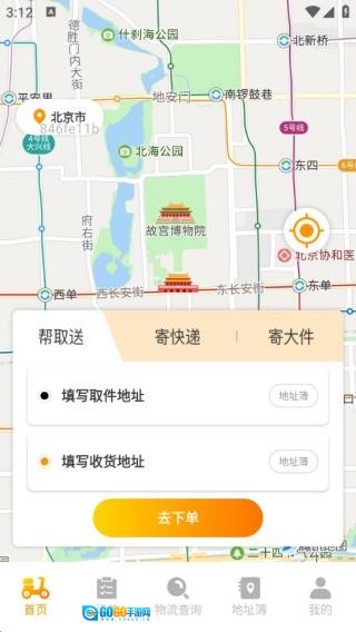 2、首页设有帮取送、寄快递、寄大件等选项,方便用户直接下单。