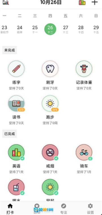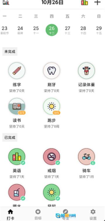 支持设置各种目标打卡,帮助大家养成日常习惯;