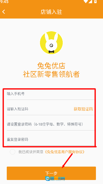3、依据页面给出的提示,依次输入号码、验证码与密码,点击“下一步”按钮,就能完成注册流程。