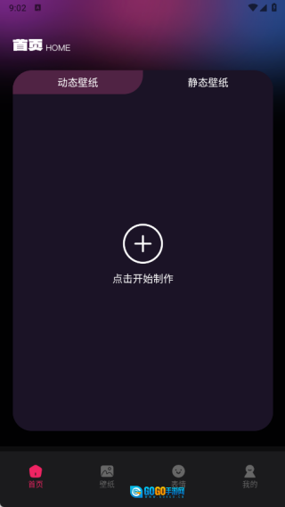 1、在首页点击“+”号,即可制作动态壁纸或静态壁纸;