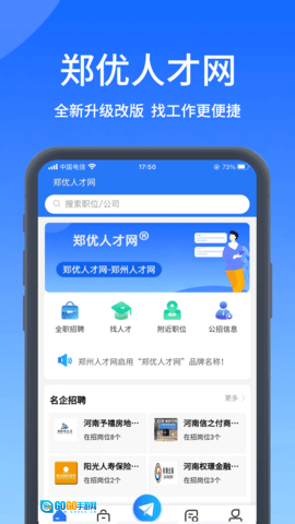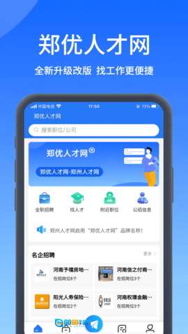 郑州人才网的宣传语是“找好工作,上郑优人才网!”,这句宣传语简单直白地展现了郑州人才网的核心宗旨,它激励求职者主动借助郑州人才网的资源与服务,寻觅到理想的工作。同时,它也向企业传递了这样的讯息:在招聘时选择郑州人才网,能更迅速地招到出色的人才。作为一款聚焦地方资讯与全职招聘的软件,郑州人才网为本地的求职者和企业提供了多样的资源与服务。借助郑州人才网,求职者能获取更多求职机遇,增强自身的就业竞争力;企业则可以更便捷、高效地吸纳更多优秀人才。不管是求职者还是企业,都能从郑州人才网中获得益处,达成自身的就业目标与发展需求。