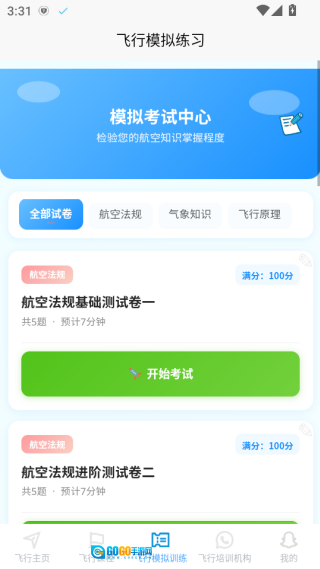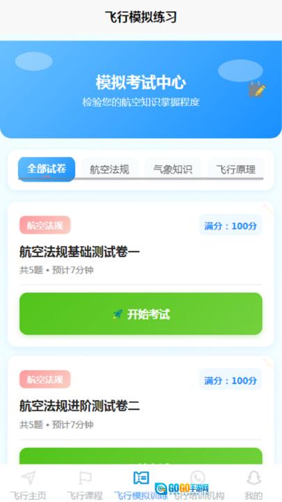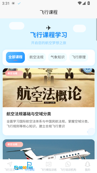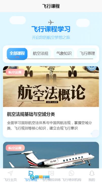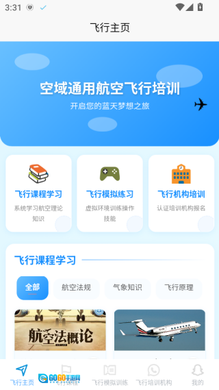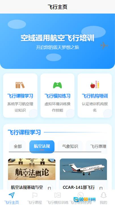 首页整合了系统化的飞行课程体系,同时配备了专项训练和模拟操作功能。